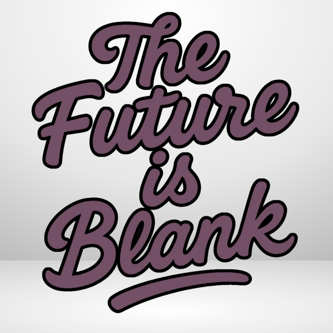 Hinten groß und bold: "THE FUTURE IS BLANK" – klar, direkt und mit Vision. 👁🗨💥