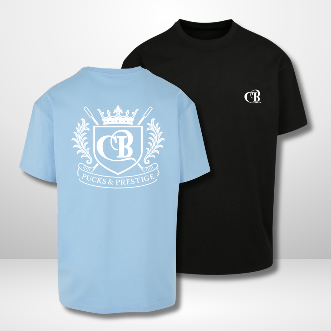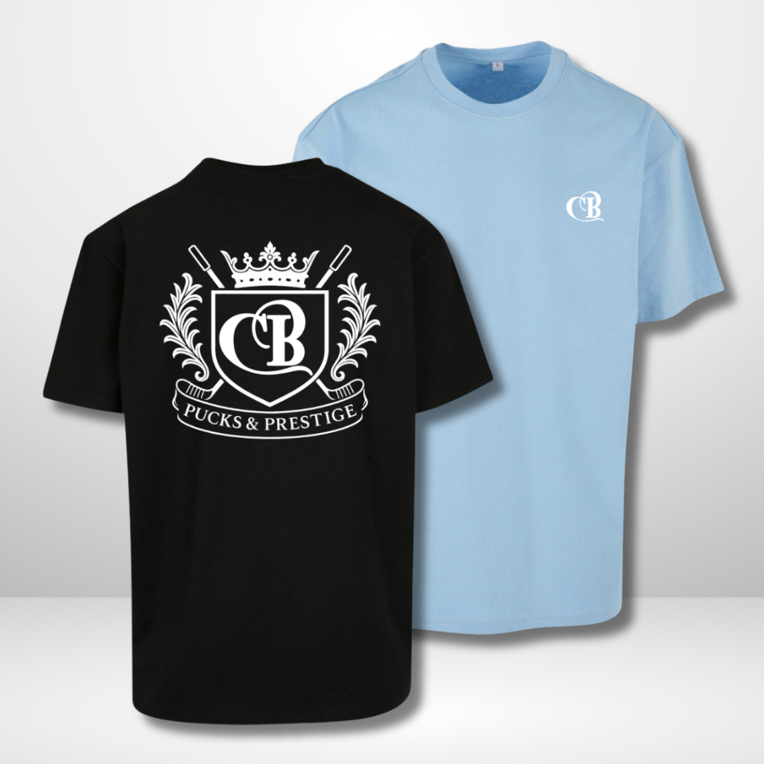 Zwei Farben. Eine Message. Das Oversized-Shirt in Black oder Baltic Blue ist das Aushängeschild des neuen Drops „Pucks & Prestige“ – in Zusammenarbeit mit Cody Brenner #51 🥅