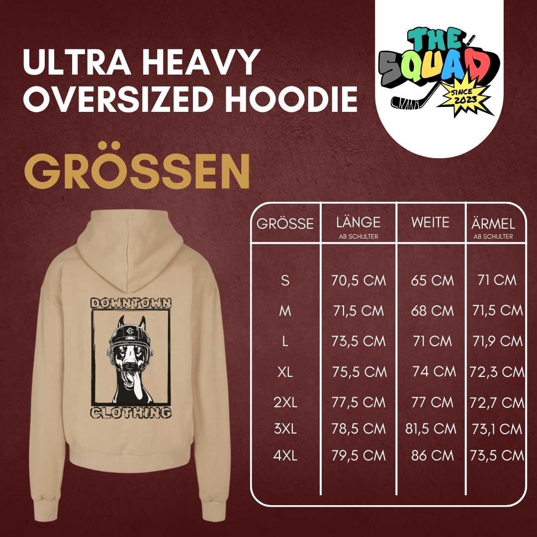 Der Hoodie ist im Ultra Oversized Cut geschnitten und fällt dementsprechend weit aus.