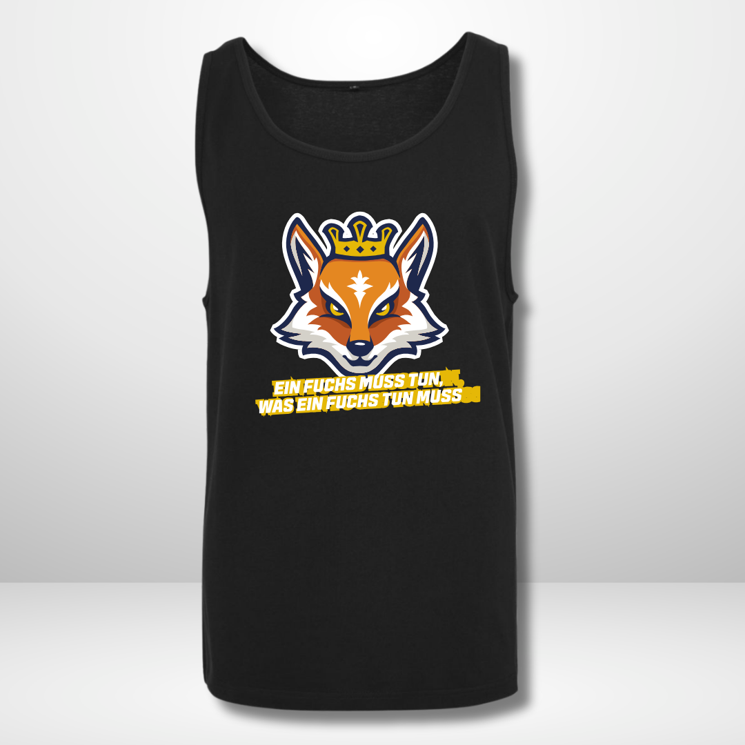 Dieses Tanktop in klassischem Schwarz bringt den legendären Füchse-Spruch direkt auf die Brust – kombiniert mit einem frechen Comic-Fuchs im Action-Style.