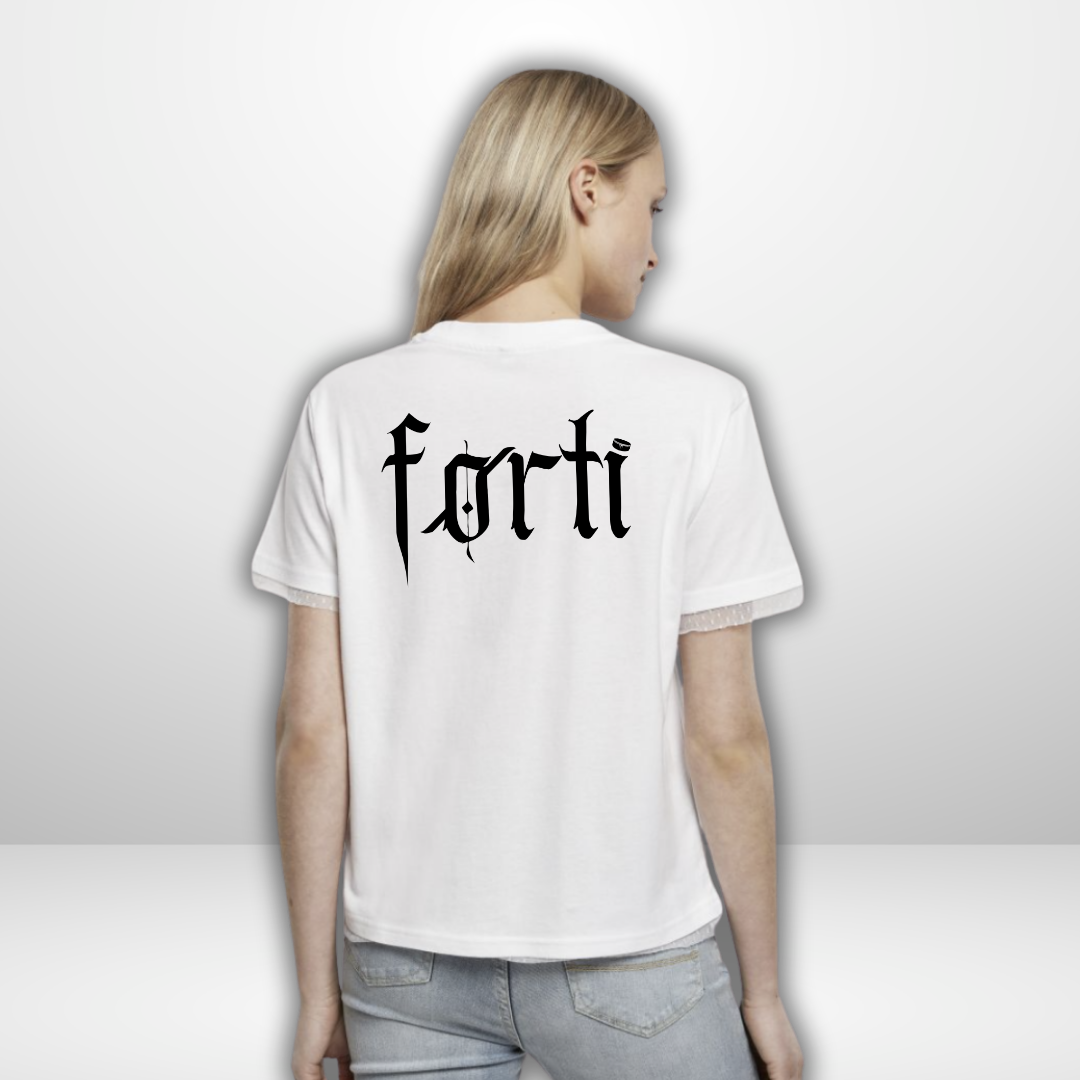 This white tee from the official Henrik Haukeland drop brings together sporty street vibes and stylish feminine touches. A bold FØRTI back print meets a subtle front logo on the chest.