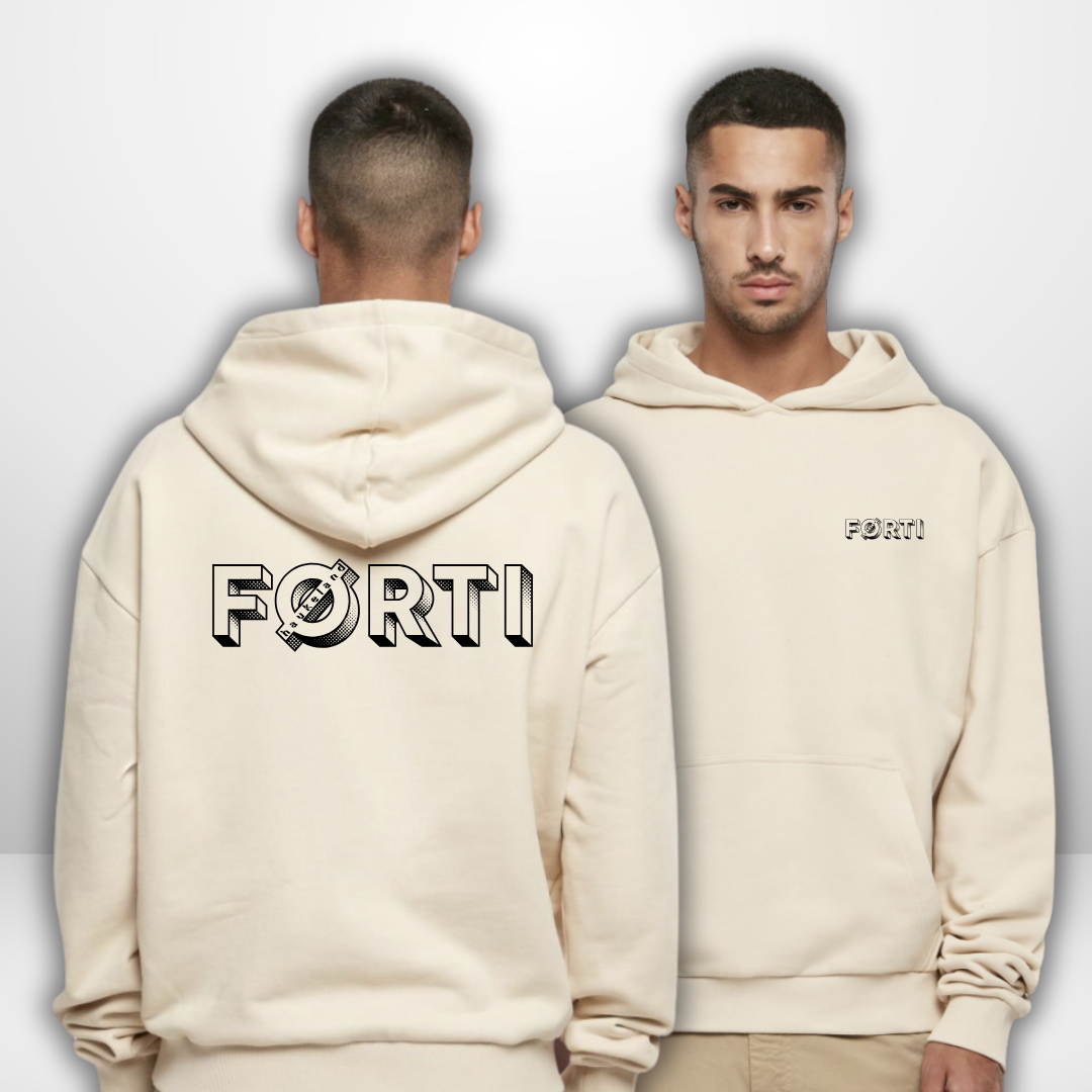 This oversized hoodie in sand features a big FØRTI back print and a clean neck detail.