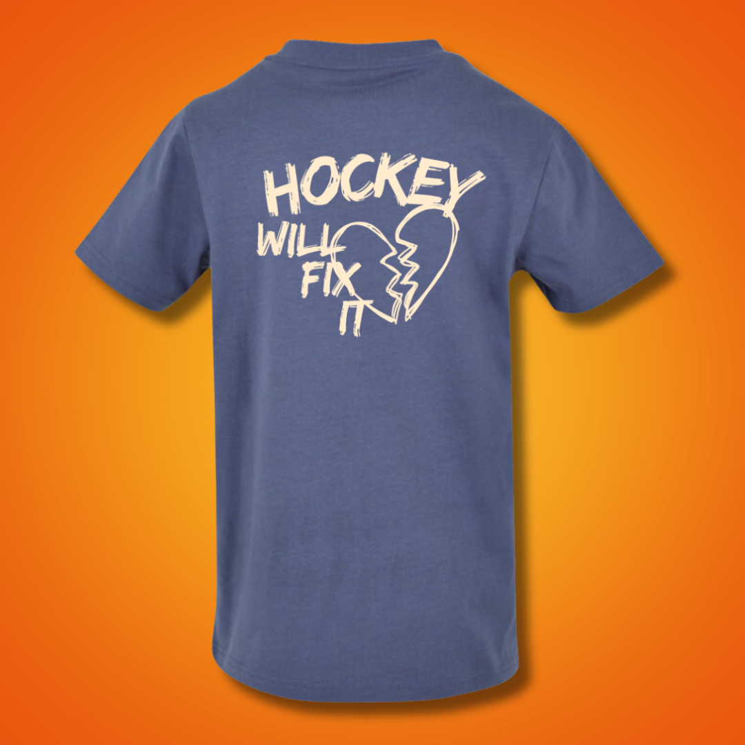 Schlechte Tage? Passiert. Aber jede Hockeymom und jeder Hockedad weiß: Sobald der Puck fällt, ist ist der Alltag für die Kleinen vergessen. Das original THE SQUAD Hockey Will Fix It Kids T-Shirt in Vintageblue ist mehr als nur ein Shirt – es feiert die Freude, die der Sport in das Leben deiner kleinen Hockey-Cracks bringt.
