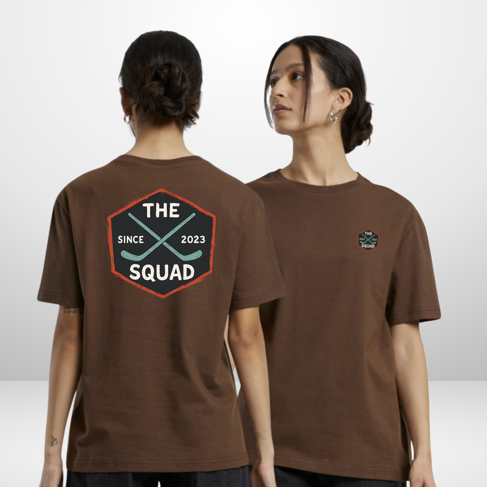 Dieses Shirt ist ein echtes Highlight aus unserer Favorite-Serie – jetzt in edlem Chocolate Brown, exklusiv als FemFit-Version! Der große THE SQUAD Rückenprint mit den gekreuzten Hockeyschlägern und dem „Since 2023“-Schriftzug macht klar: Du bist Teil der neuen Hockey-Generation. 💥