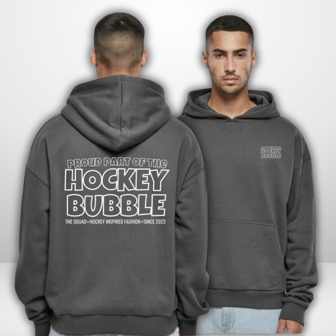 Auf dem Rücken steht in bold: „Proud part of the hockey bubble“ – laut, ehrlich, vereint.
