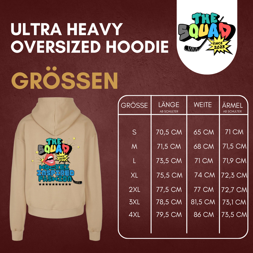 Der Hoodie ist im Ultra Oversized Cut geschnitten und fällt dementsprechend weit aus.