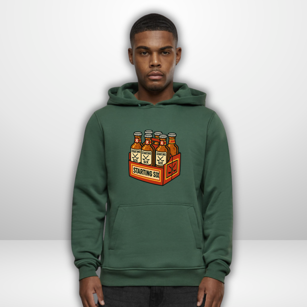 Ob Kabine, Fanblock oder Feierabendbier – mit deinem „Starting Six“-Hoodie zeigst du, dass dein Team schon steht.