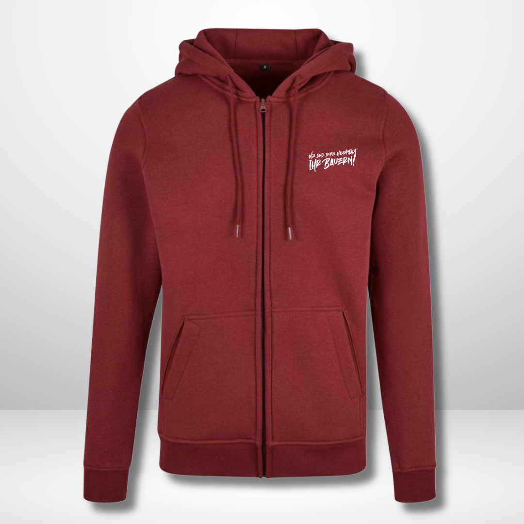 In den Farben Schwarz 🖤 und Burgundy 🍷 kombiniert der Hoodie sportlichen Look mit maximaler Bequemlichkeit. Mit durchgehendem Reißverschluss, Kapuze und hochwertigem Druck ist er perfekt für kalte Spieltage oder laue Sommernächte in Berlin.